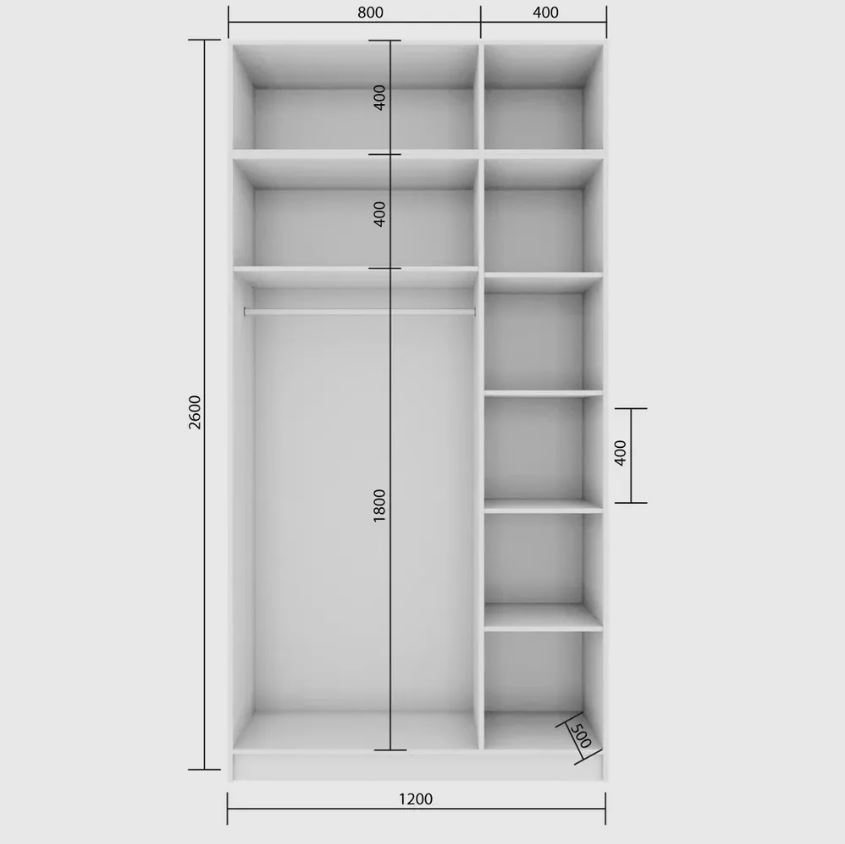 — Высокая вместимость: общая высота шкафа вместе с антресолью составляет 260 см.