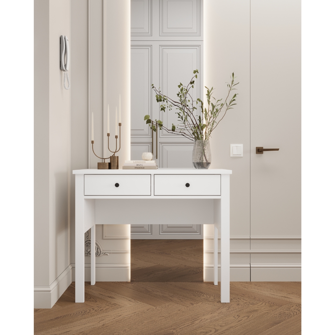 Туалетный / письменный стол САГА 92х45 см — это изящное и функциональное решение для организации комфортного места для мейкапа, работы или учебы.