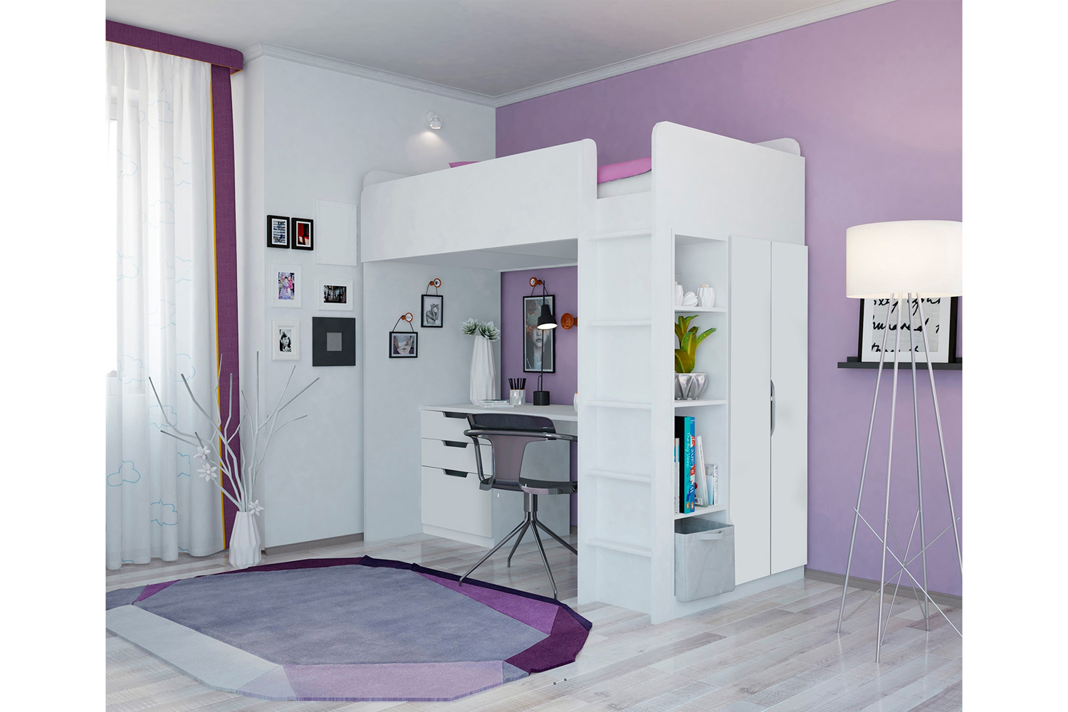 Кровать — чердак KIDS SIMPLE — это современное компактное решение для детской комнаты. Безопасная, прочная и долговечная мебель, создающая уютную атмосферу. Чердак позволит сэкономить много места в комнате ребенка.