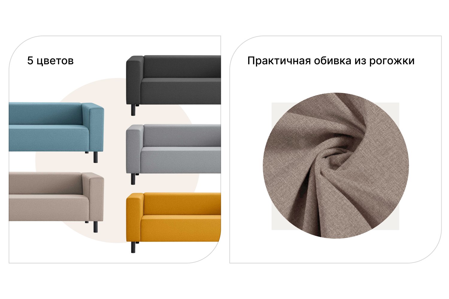 Дизайн модели — воплощение геометричности: диван будто собран из прямоугольных параллелепипедов, а его металлические ножки представляют собой идеальные цилиндры.