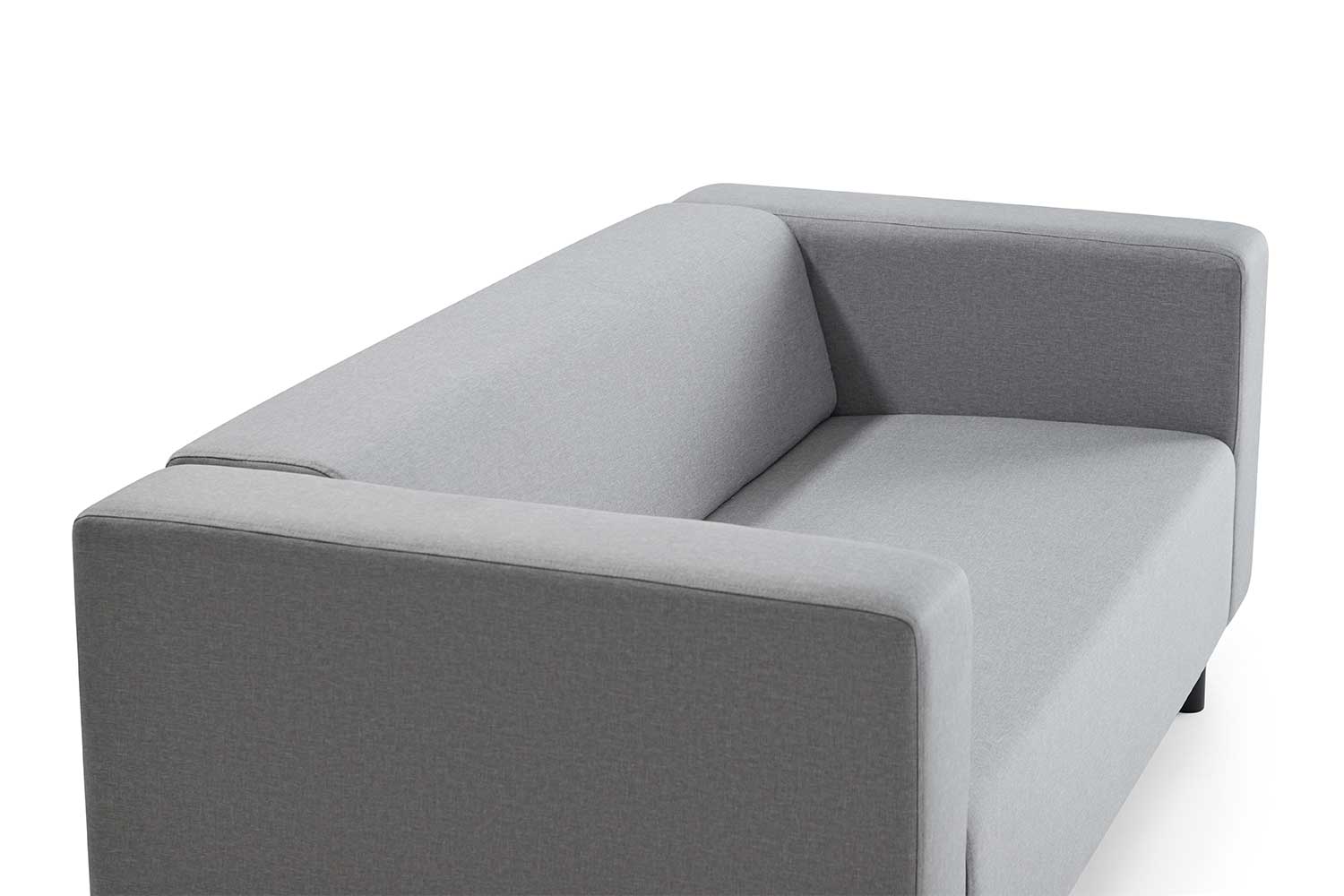 Дизайн модели — воплощение геометричности: диван будто собран из прямоугольных параллелепипедов, а его металлические ножки представляют собой идеальные цилиндры.