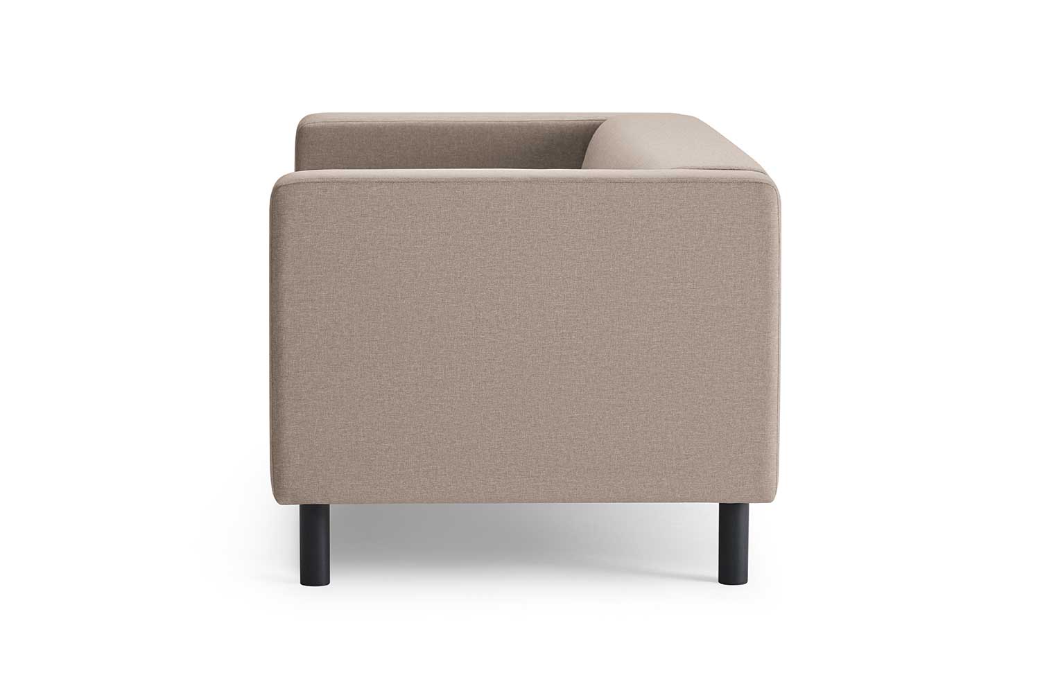 Дизайн модели — воплощение геометричности: диван будто собран из прямоугольных параллелепипедов, а его металлические ножки представляют собой идеальные цилиндры.