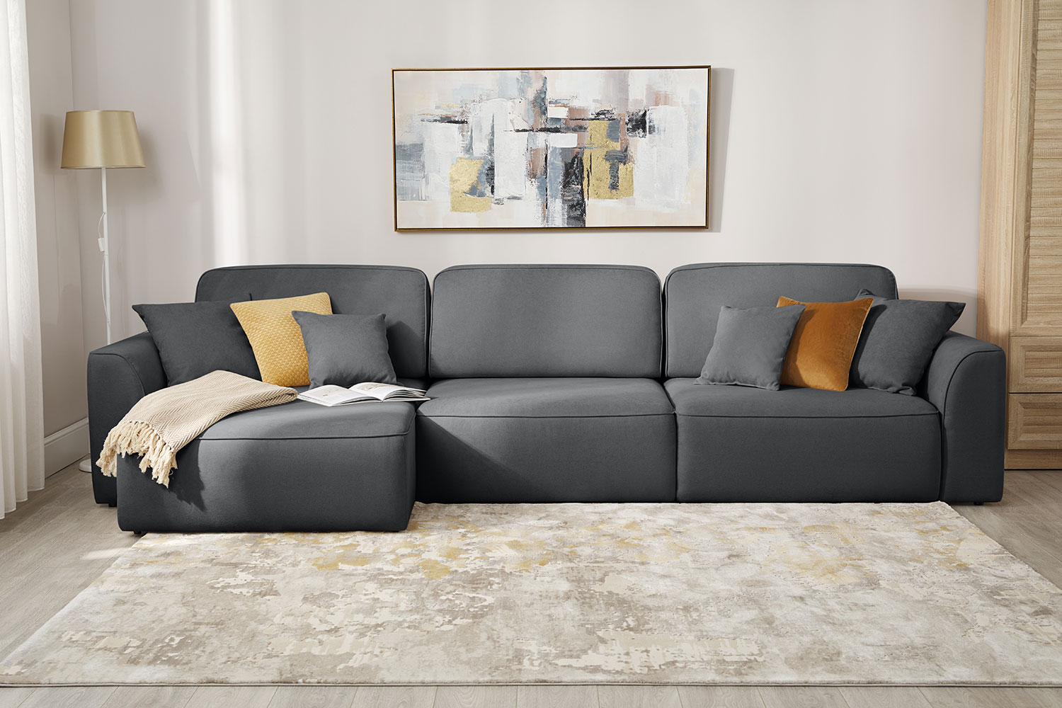 Просторный диван для комфортного отдыха.