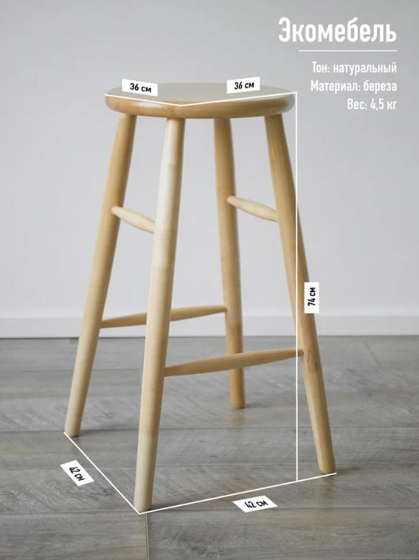 МОДЕРН, табурет барный из массива берёзы, 74 см, натуральный