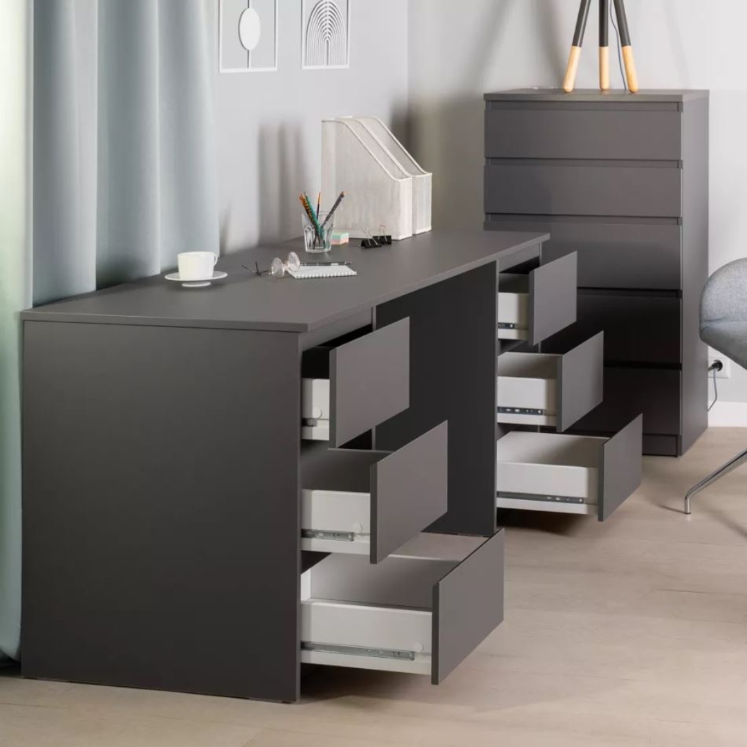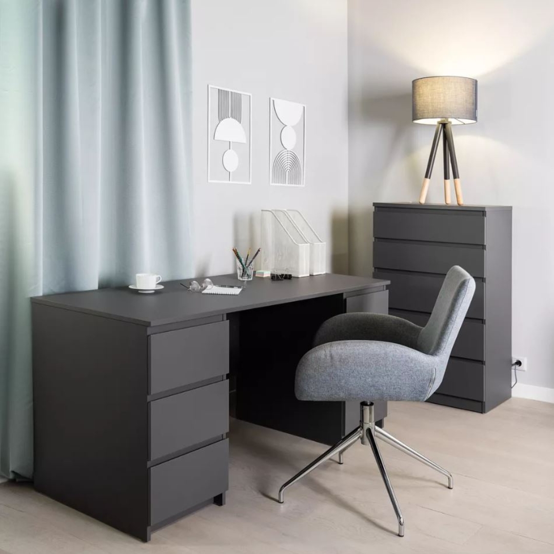 Дизайн ящиков без ручек делает стол более лаконичным и визуально легким, а поверхность выглядит цельной и гармоничной.