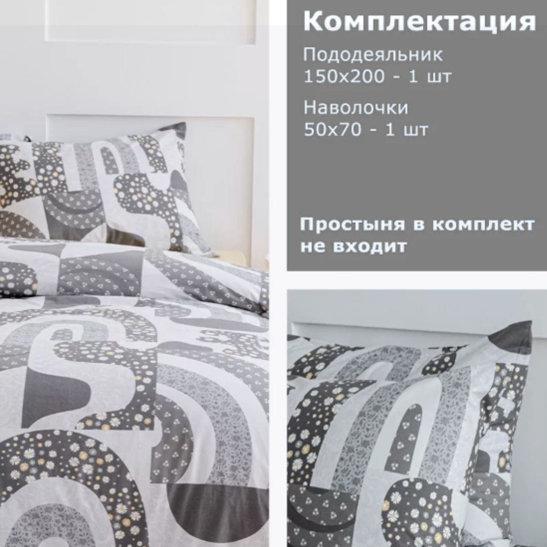 В упаковке: 1 пододеяльник 150х200см, 1шт наволочка 50х70см